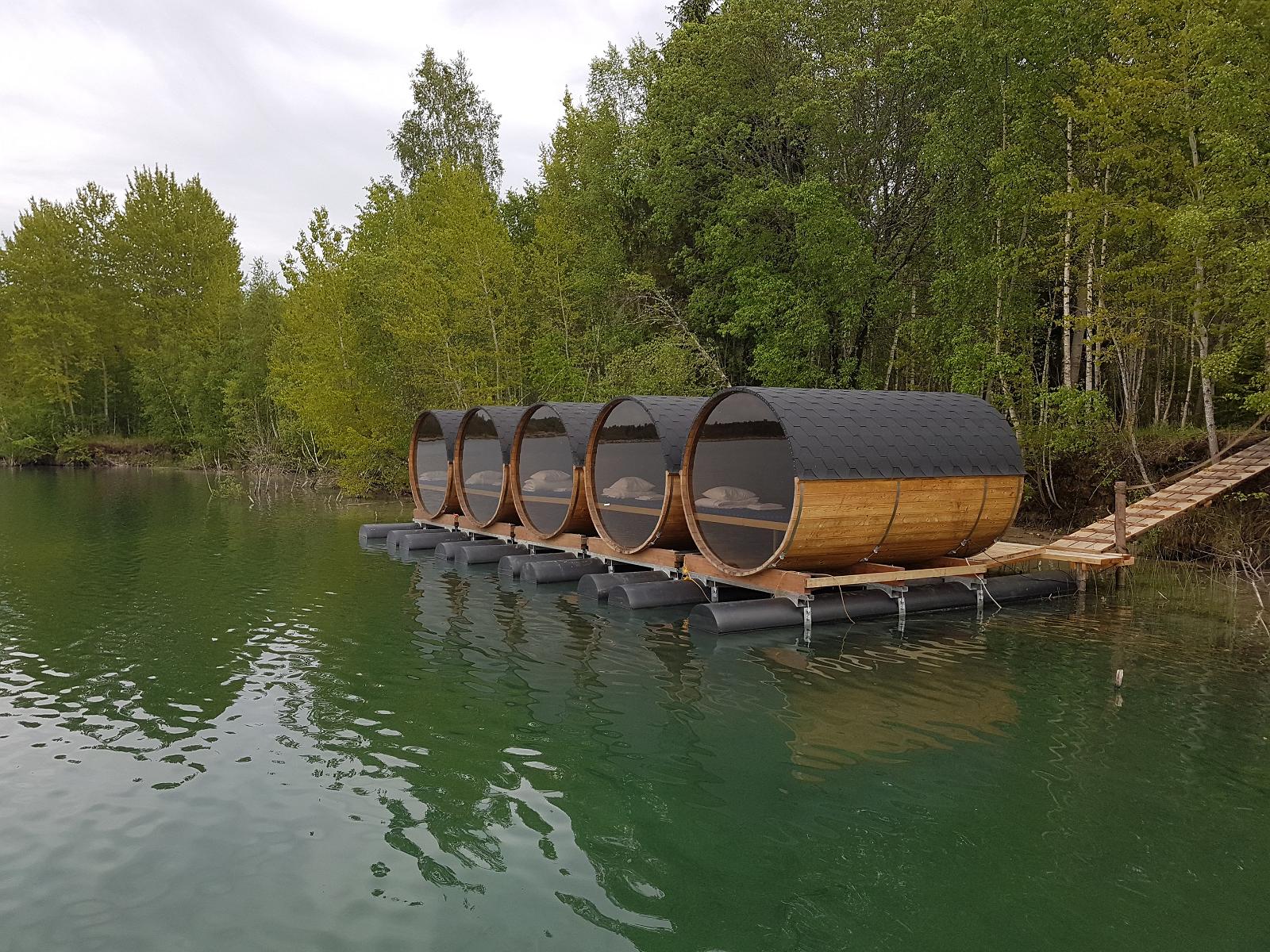 Paekalda Puhkekeskus pakub ainulaadset võimalust majutuda maalilisel Rummu karjäärijärvel veepealsetes klaasist seinaga tünnikämpingutes.
